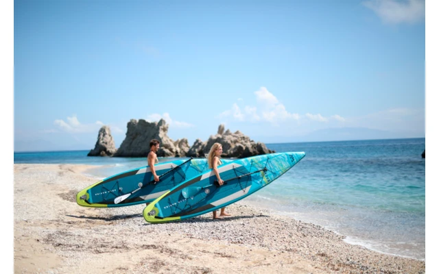 Die unübertroffene Steifigkeit und Stabilität, die durch die neue Doppelkammerkonstruktion zustande kommt, macht Hyper ideal für den Transport von Campingausrüstung, während seine stromlinienförmige Form perfekt für Hochgeschwindigkeitsfahrten geeignet ist und es Ihnen ermöglicht, weiter und länger zu paddeln. Das aufblasbare Hyper Touring Board wird das Lieblingsfahrzeug aller Entdecker sein.