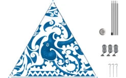 Lieferung inkl. 3 Heringen, 3 Abspannseilen inkl. Alu Stopper, 4-teilige Stahl Aufstellstange 180 cm x 19 mm inkl. Kunststoff Teller.