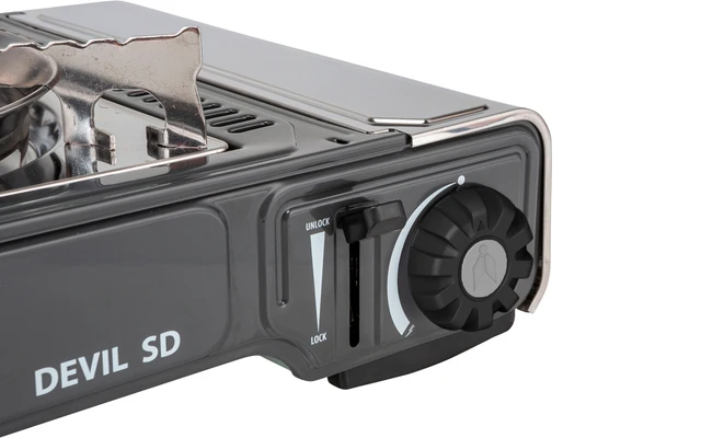 Kartuschen-Gaskocher mit Zündsicherung, integrierter Piezozündung und Alu-Brenner. Die Gaszufuhr ist regelbar. Der Kocher wird inklusive Transportkoffer geliefert und der Betrieb erfolgt mittels Gaskartuschen.