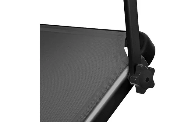 Komfortable Freizeitliege für den entspannten Aufenthalt am Strand, im Garten oder auf der Terrasse. Die stabile Konstruktion ist mit einem stabilen, klappbaren Dreibeingestell aus eloxiertem Aluminium und einer hohen Liegefläche (H=48 cm) aus witterungsbeständigem und pflegeleichtem Syntex Plus Gewebe ausgestattet. Die breite Rückenmlehne ist 4-fach verstellbar, um eine optimale Liege-/Sitzposition zu erreichen. Ein praktisches, individuell einstellbares Sonnenschutzdach ist ebenfalls im Lieferumfang inbegriffen.
