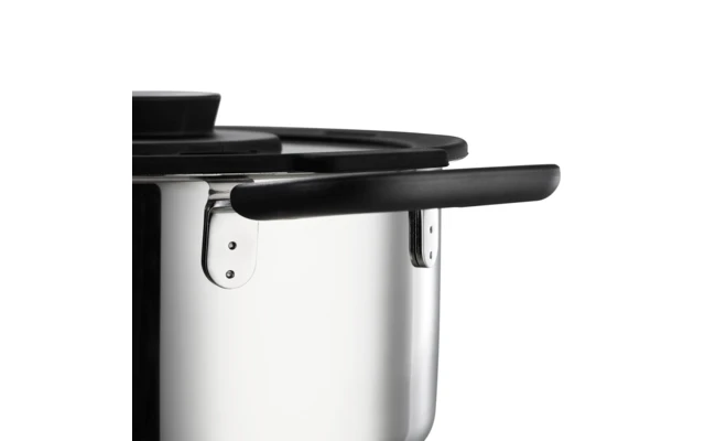 Die breiten Griffe aus bleiben kühl und bieten einen sicheren und komfortablen Griff. Der flache Deckel aus gehärtetem Glas ermöglicht ein sicheres Beobachten und verfügt über zwei Ausgießmöglichkeiten, Dampf- und Kochkontrollfunktionen sowie einen geräuschlosen Silikonrand.