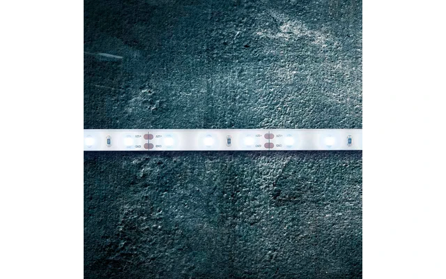 60 SMD LEDs pro Meter garantieren auf kleinstem Raum eine großflächige und helle Beleuchtung im Innen- und Außenbereich. Trotz geringer Leistungsaufnahme von max. nur 4,8 W/m wird ein Lichtstrom von 413 lm erreicht. Die Farbtemperatur liegt bei 4.500 K (neutralweiß). Die Lebensdauer der LEDs beträgt mindestens 36.000 h.