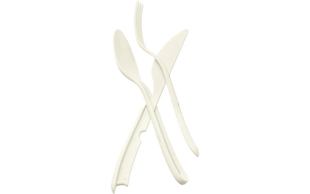 Das perfekte Besteck für draußen und unterwegs, in ordentlicher Größe! Messer, Gabel und Löffel lassen sich ineinanderstecken – zum Lösen einfach das Messer an der Spitze anheben und nach unten herausziehen. Liegt gut in der Hand und passt mit seinem Leichtgewicht wirklich in jede Tasche. Wiederverwendbar.