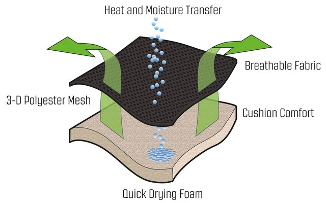 Der Samoa besitzt eine schnell trocknende Polsterung sowie ein Textiline-Netzmaterial in einem ansprechenden Schwarzton. Der Stuhl ist unter dem Bezug mit einem wasserabweisenden Material versehen, damit sich die Schaumstoffpolster nicht mit Wasser vollsaugen können, falls der Stuhl einmal im Regen vergessen werden sollte. Die Kopfstütze lässt sich einstellen und abnehmen.