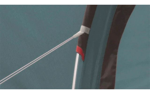 Verriegelungsspitzen und doppelte Ösen in robustem Gurtband sichern die Innenstangen mit der Firststange.
