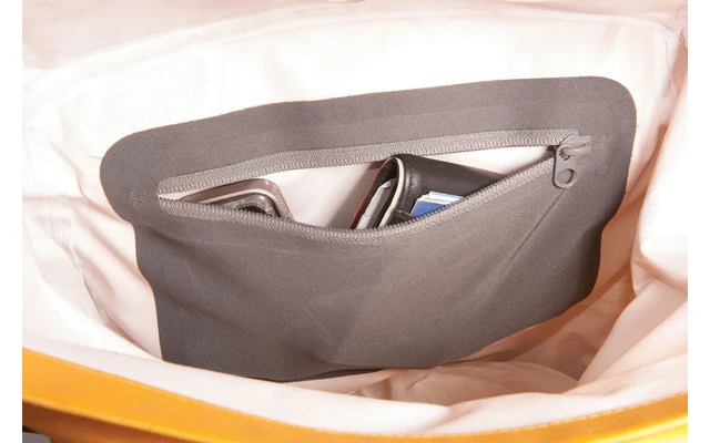 Eine Stretch-Innentasche mit Reißverschluss ist integriert, damit Gegenstände nicht im Boden des Rucksacks verschwinden. Außerdem verfügt er über eine äußere Befestigungsschlaufe, seitliche Netztaschen aus Stretchmaterial und eine große Reißverschlusstasche für eine leicht zugängliche Aufbewahrung.