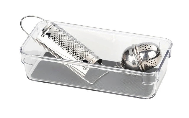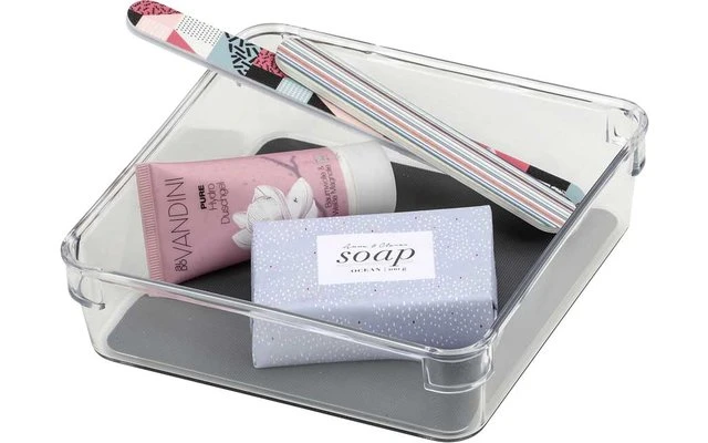 Der praktische Schubladeneinteiler Cube von WENKO bringt Ordnung in jede Schublade. Egal, ob in der Küche, im Flur, im Kleiderschrank oder im Bad ermöglicht der Organizer eine übersichtliche Aufbewahrung von Utensilien und hält diese stets griffbreit. Im modernen Design aus hochwertigem, grau-transparentem Kunststoff gefertigt passt die quadratische Box in jede handelsübliche Schublade. Alle Schubladeneinteiler von WENKO sind untereinander individuell kombinierbar und zudem rutschfest.
