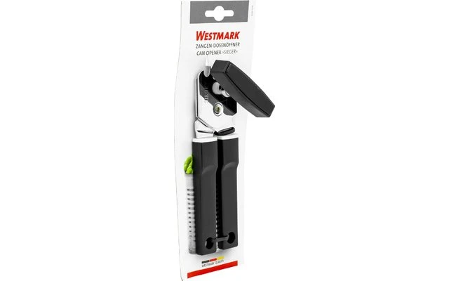 Praktischer Zangendosenöffner zum Öffnen von Konservendosen sowie von Flaschen mit Kronkorken.